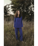 extrémně lehký funkční dámský noční úbor pro aktivní cestovatelky zapínání u krku dlouhé kalhoty se stahovací šňůrkou hedvábná bavlna je vynikající materiálkombinující vlastnosti egyptské bavlny a hedvábí v poměru 55% hedvábí a 45% egyptské bavlny hedvábná bavlna je trvanlivější, o něco těžší a silnější než čistéhedvábí dobře reaguje na měnící se teploty, působí měkce na pokožku velmi malá velikost balení