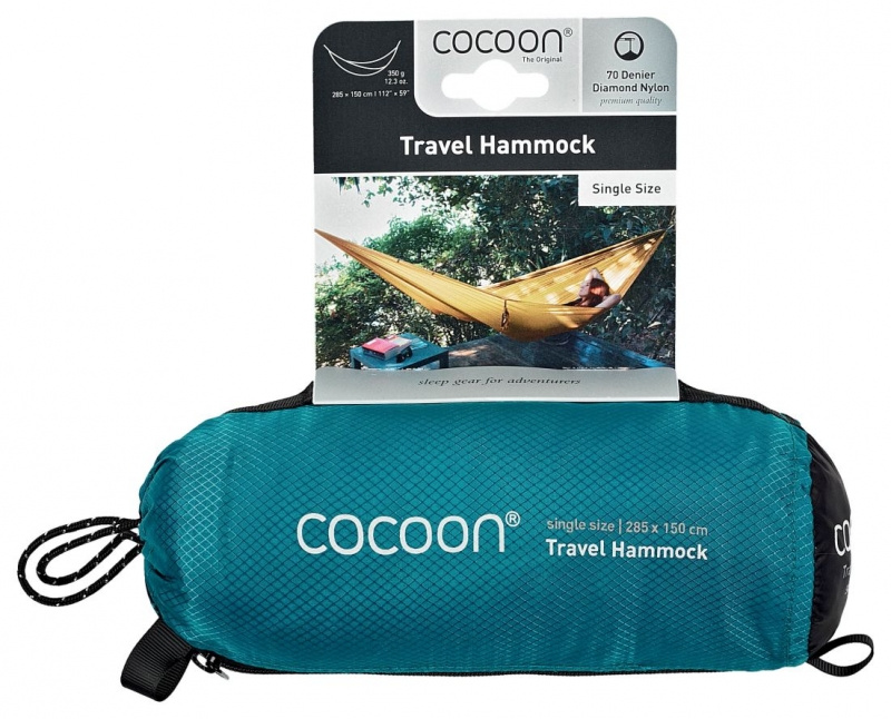-cestovní hamaka pro jednoho s maximální nosností 180 kg a zesíleným prošíváním -vyrobeno z pevného materiálu 70D Diamond Ripstop Nylon, který je příjemný na dotek -úložný kompresní vak může sloužit zároveň jako držák na láhev nebo drobné doplňky, které chcete mít po ruce -součástí balení jsou dvě hliníkové karabiny 12 KN (hmotnost navíc 40 g) -poutko pro zavěšení hamaky ve sbaleném stavu