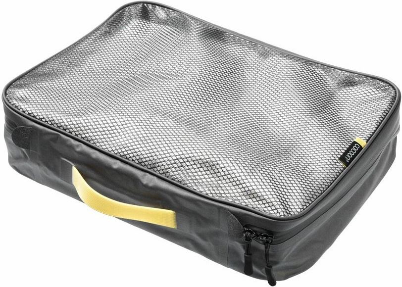 praktický organizér pro uložení a organizaci oděvů, obuvi, toaletních potřeb, drobné elektroniky a dalších doplňků v zavazadle nebo batohu uzavírání pomocí obousměrného voděodolného zipu YKK Aqua Guard s taháčky usnadňujícími otevírání a zavírání víko z voděodolné transparentní laminované síťoviny pro lepší přehled, co je v organizéru uloženo vyrobeno z voděodolného nylonu Oxford laminovaného TPU s odolností proti vzniku skvrn plně svařované švy bez prošívání držadlo pro usnadnění přenášení