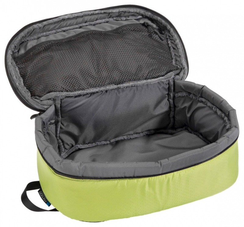 světle zelený polstrovaný organizér 5.5l na zip na ochranu cenných předmětů před poškozením s vnitřní kapsou ze síťoviny na drobnosti a sadou vnějších poutek pro upevnění k opasku nebo popruhu batohuVíce