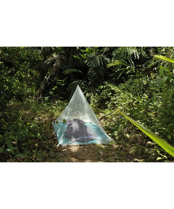 -velmi jemná a lehká outdoorová moskytiéra pro jednu osobu -vyrobeno ze 100% síťovinového polyesteru -hustota 50 otvorů na 1 cm2 -barevně označené tkaničky na bocích a na vrcholu sítě -kapsy na kameny pro zatížení v každém rohu moskytiéry -maximální výška 155 cm -kompresní vak