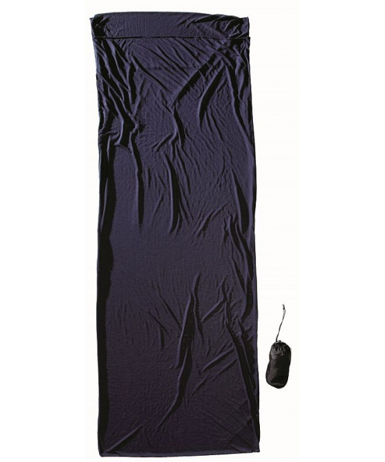 modrá přikrývka 305g z coolmaxu obdélníkového tvaru vhodná jako cestovní spací pytel do teplých krajin nebo hygienická pokrývka a přidávající 4,7°C k teplotnímu komfortu spacího pytleVíce
