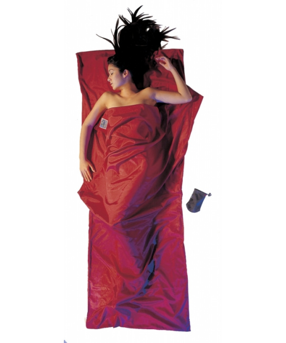 červená přikrývka 220g z hedvábné bavlny obdélníkového tvaru vhodná jako cestovní spací pytel do teplých krajin nebo hygienická pokrývka a přidávající 4,8°C k teplotnímu komfortu spacího pytleVíce