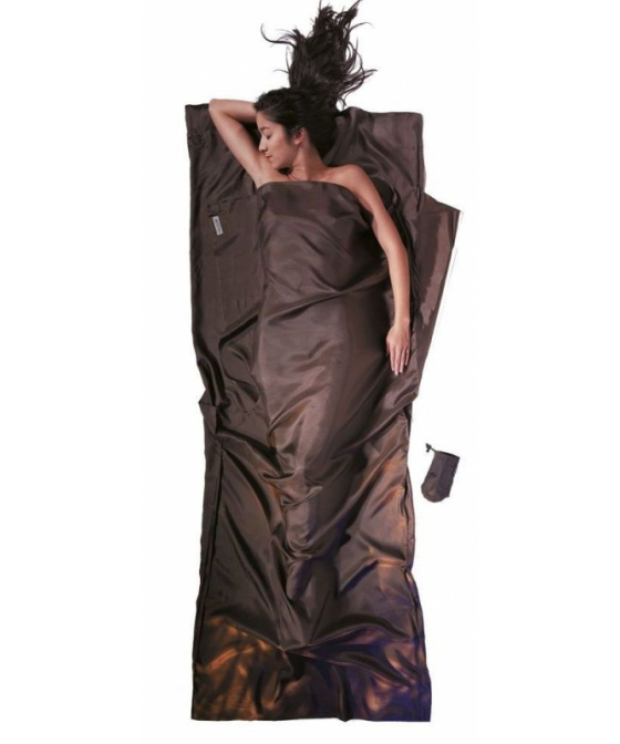 šedá přikrývka 160g z hedvábí obdélníkového tvaru vhodná jako cestovní spací pytel do teplých krajin nebo hygienická pokrývka a přidávající 5,3°C k teplotnímu komfortu spacího pytleVíce