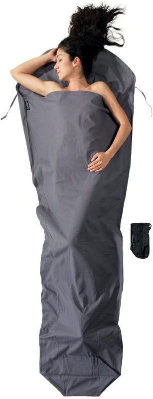 velmi lehká zužující se přikrývka ve formě cestovního spacího pytle tvar mumie pro minimum hmotnosti určeno pro použití v teplých dnech a v oblastech s teplým klimatem kapsa pro vložení polštáře stahovací kapuce dostatečně široká horní část a zúžený prostor pro nohy dvojité prošívání nylonový kompresní vak použitelné také jako hygienická vložka do spacího pytle tvaru mumie, udržující spací pytel v čistotě aprodlužující jeho životnost ideální do hotelů, hostelů, horských chat, do letadel, vlaků, na loď nebo na jachtu každý z použitých materiálů je díky svým vlastnostem přizpůsobený rozdílným klimatickýmpodmínkám a teplotě bavlna z jemné příze, tkaná speciální technikou, která poskytuje vysokou kvalitu, lehkost a odolnost tkaniny bavlna je prodyšná, stálobarevná a velmipříjemná při dotyku s pokožkou vytváří přirozenou rovnováhu vlhkosti lze prát v pračce teplota určuje přidanou hodnotu k teplotnímu komfortuspacího pytle, teplota se může lišit o2°C v obou směrech testováno laboratoří REILAB (ReservoirsEnvironmental, Inc.) v Coloradu, poskytující analytické služby voblasti průmyslové hygieny, životníhoprostředí a potravinářského průmyslu