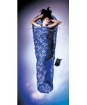 květovaná přikrývka 340g z bavlny tvaru mumie vhodná jako cestovní spací pytel do teplých krajin nebo hygienická pokrývka a přidávající 2,9°C k teplotnímu komfortu spacího pytleVíce