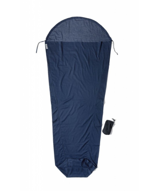 tmavomodrá spacáková přikrývka 200g obdélníkového tvaru z bavlny ve speciální velikosti S pro osoby menšího vzrůstu a přidávající 3,9°C k teplotnímu komfortu spacího pytleVíce