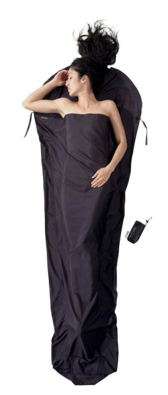 tmavošedá přikrývka 160g z materiálu Thermolite® Silkweight tvaru mumie vhodná jako cestovní spací pytel nebo hygienická pokrývka a přidávající 6,3°C k teplotnímu komfortu spacího pytleVíce