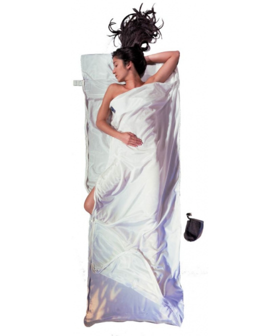 bílá přikrývka 220g z hedvábné bavlny obdélníkového tvaru vhodná jako cestovní spací pytel do teplých krajin nebo hygienická pokrývka a přidávající 4,8°C k teplotnímu komfortu spacího pytleVíce