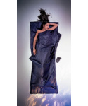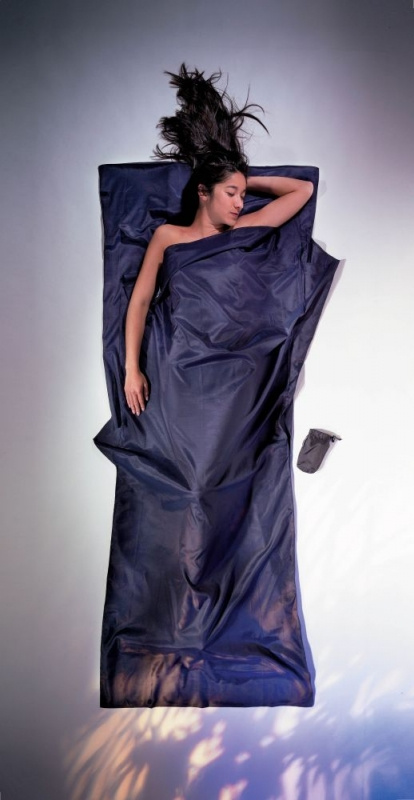 tmavomodrá přikrývka 220g z hedvábné bavlny obdélníkového tvaru vhodná jako cestovní spací pytel do teplých krajin nebo hygienická pokrývka a přidávající 4,8°C k teplotnímu komfortu spacího pytleVíce
