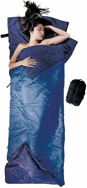 modrý ultralehký nylonový spací pytel 840g standardní velikosti z velmi kvalitních materiálů umožňující s použitím fleecové deky, spací podložky či druhého spacího pytle vytvářet různé kombinace na spaníVíce