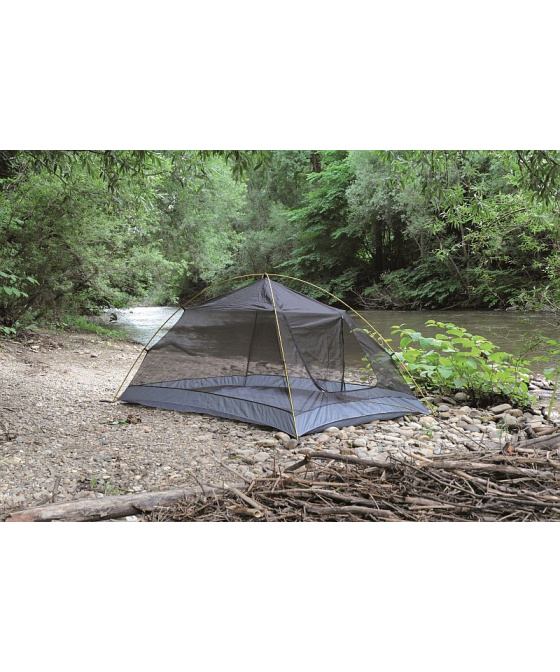 -jemná a lehká stanová moskytiéra pro dvě osoby -základna moskytiéry z voděodolného 100% nylonu s vodním sloupcem 1000 mm a PU zátěrem -samonosná konstrukce z lehkých a odolných hliníkových tyček -hustota 185 otvorů na 1 cm2 -kompresní vak -otevírání na zip -maximální výška 110 cm -moskytiéra není impregnovaná