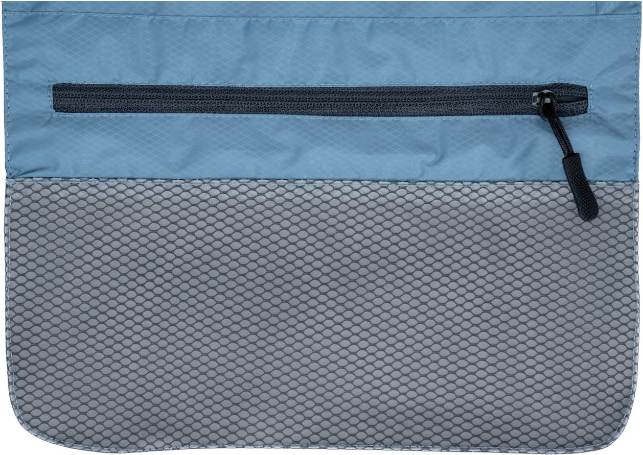 kompaktní lehká závěsná toaletní taška ve štíhlém designu s TPU laminací zajišťující voděodolnost čtyři vnitřní kapsy s YKK zipy odnímatelné transparentní pouzdro na zip s plně svařovanými švy na tekuté toaletní potřeby zabraňující rozlití a upevněné pomocí dvou druků rozměr vnitřního pouzdra 23 x 12 x 6 cm protiskluzový plastový háček s elastickým popruhem pro snadné zavěšení sloužící zároveň pro uzavření toaletní tašky vyrobeno z recyklovaného 30D polyesteru s reliéfním vzorem a úpravou ripstop s odolností proti roztrženíVíce