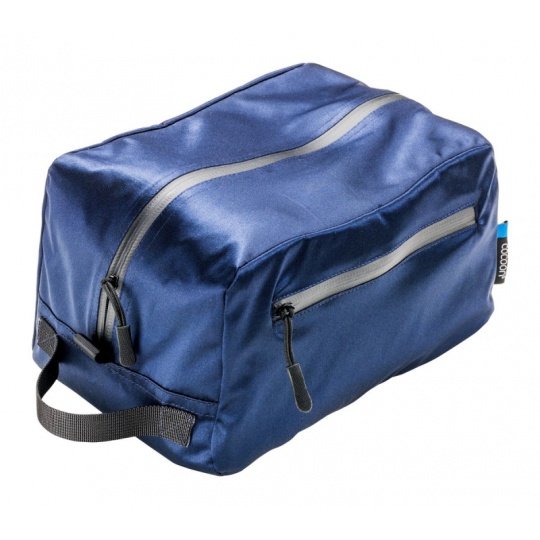 tmavomodrá hedvábná toaletní taška 4,7l s vnitřní TPU vrstvou pro zajištění voděodolnosti, vnitřními a vnějšími kapsami na toaletní potřeby a voděodolným zipemVíce