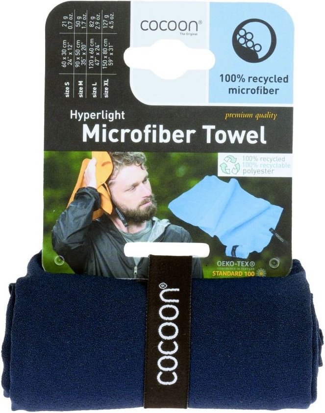 velmi kompaktní, hyperlehký cestovní ručník absorbuje až čtyřnásobek své hmotnosti a je extrémně rychleschnoucí vyrobeno ze 100% recyklovaného a recyklovatelného polyesteru poutko s drukem udržuje ručník ve sbaleném stavu splňuje mezinárodní podmínky Oeko-Tex® Standard 100 pro výrobky testované na přítomnost škodlivých látek majících vliv na lidské zdraví vyrobeno v PortugalskuVíce