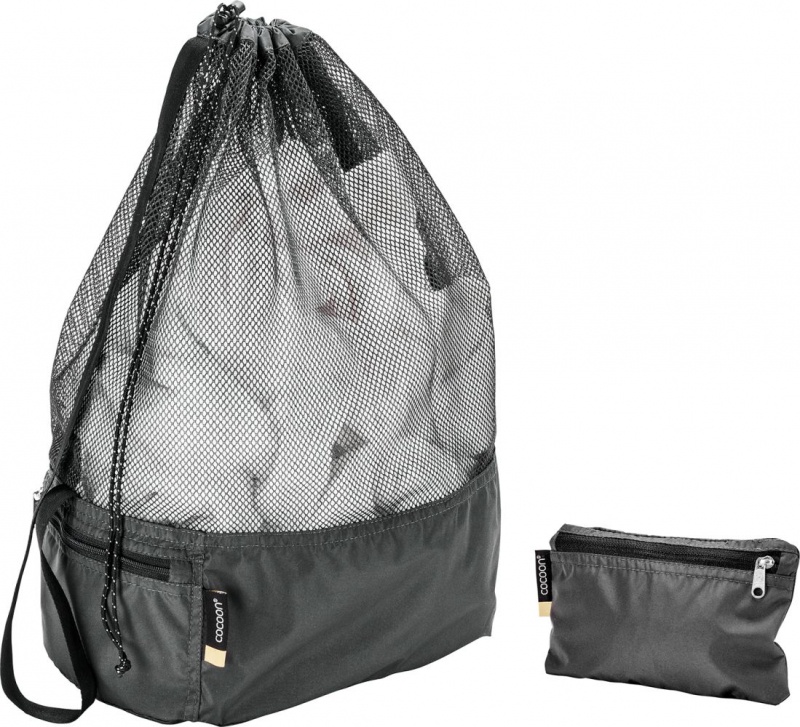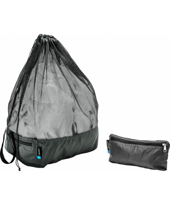 -větší síťovaný cestovní vak o objemu 40 litrů ideální na vlhké a znečištěné oblečení -síťovina umožňuje dobré odvětrávání -horní okraj se stahovací šnůrkou -TPU laminované dno pro zajištění voděodolnosti -vnější voděodolná kapsa na zip pro uložení pracích prostředků, mýdla nebo drobných mincí, pokud využíváte samoobslužné prádelny -kapsa slouží zároveň jako kapsa pro uložení vaku, pokud není používán -jednoduchý ramenní popruh pro snadné přenášení