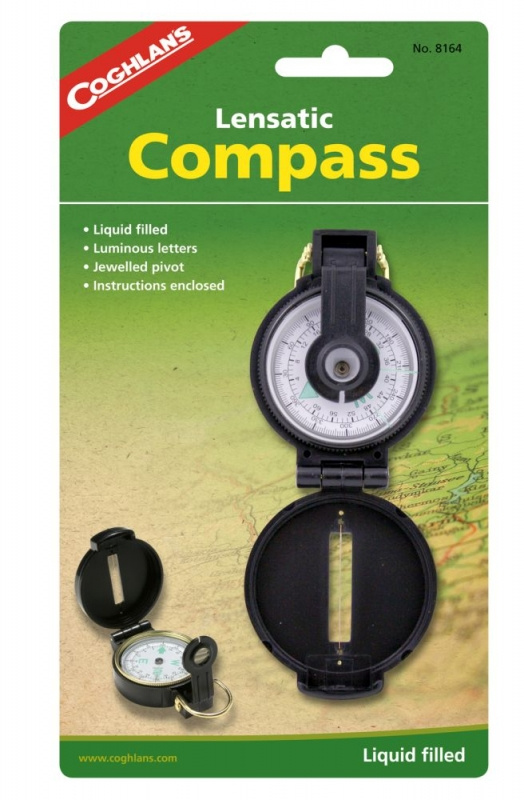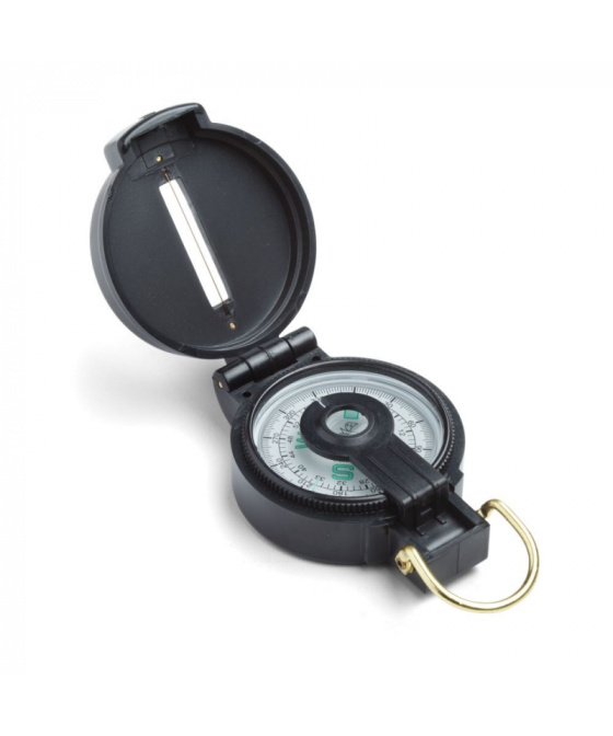 ženijní zaměřovací kapalinová buzola s plastovým korpusem černé barvy, luminiscentními ryskami a kovovým poutkem