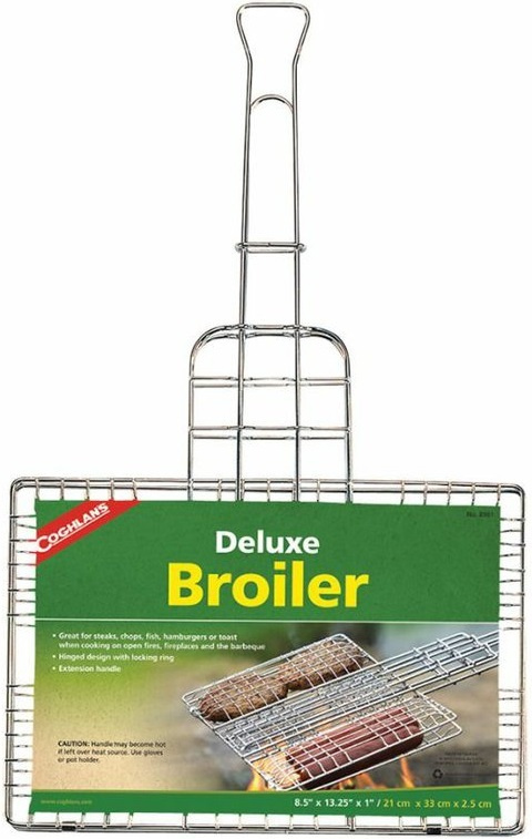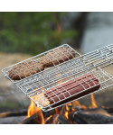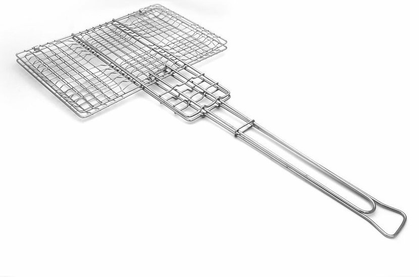 kompaktní výklopný gril se širokou grilovací plochou pro vaření na otevřeném ohni, v krbech a na grilech tři samostatné oddělené prostory pro tři kousky pochutin pro přípravu nad ohněm výsuvná rukojeť s posuvným pojistným kroužkem, který udržuje gril při přípravě uzavřený vyrobeno z pochromované oceliVíce