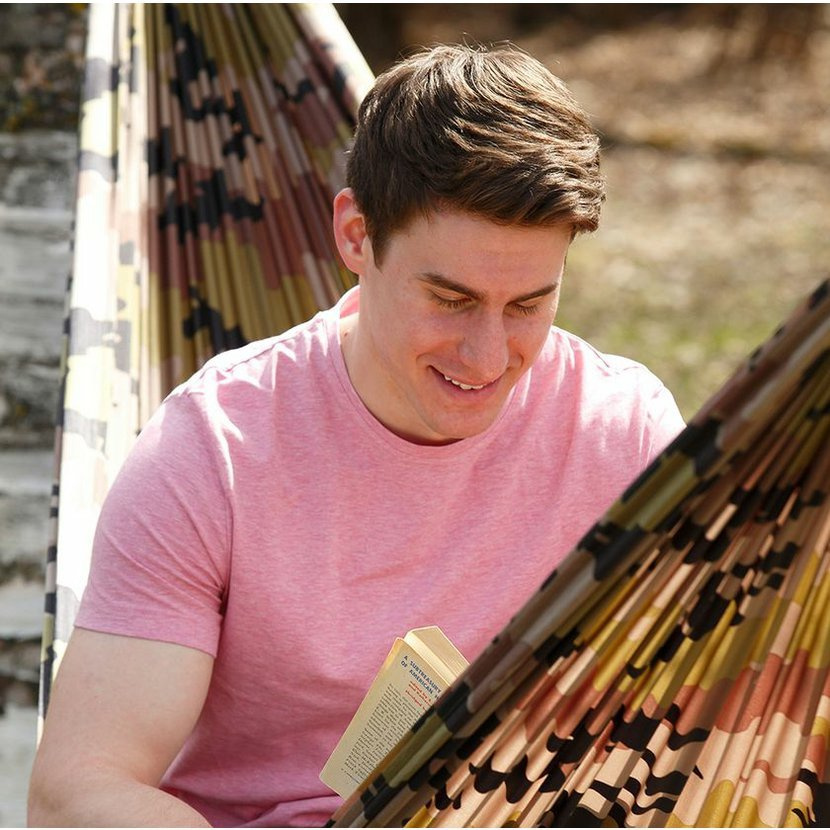 kompaktní hamaka pro jednoho, která je skvělým doplňkem pro táboření, při návštěvách festivalů nebo nouzové přenocování vyrobeno z odolného nylonu 70D s ochranou proti působení UV záření trojité švy pro větší odolnost maximální nosnost 150 kg součástí jsou dvě karabiny s nosností 500 kg a dva popruhy pro upevnění kolem kmenu stromu apod. hamaka je uložena v integrovaném obalu se stahovací šňůrkou a popruhem pro přenášení boční kapsa pro ukládání doplňků, jako je baterka, lahev s vodou, telefon nebo cokoliv, co chcete mít při ruceVíce