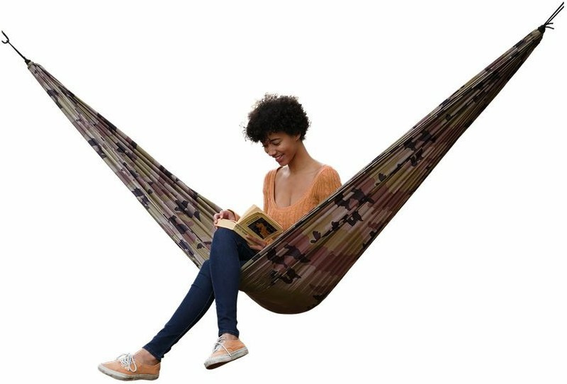 kompaktní hamaka pro jednoho, která je skvělým doplňkem pro táboření, při návštěvách festivalů nebo nouzové přenocování vyrobeno z odolného nylonu 70D s ochranou proti působení UV záření trojité švy pro větší odolnost maximální nosnost 150 kg součástí jsou dvě karabiny s nosností 500 kg a dva popruhy pro upevnění kolem kmenu stromu apod. hamaka je uložena v integrovaném obalu se stahovací šňůrkou a popruhem pro přenášení boční kapsa pro ukládání doplňků, jako je baterka, lahev s vodou, telefon nebo cokoliv, co chcete mít při ruce