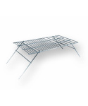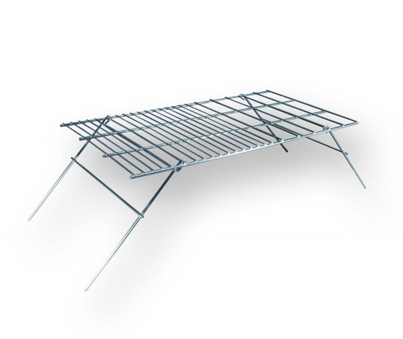 odolný skládací kempinkový gril k umístění nad oheň s pochromovaným povrchem roštu i skládacích nohou s výškou grilu nad ohněm 27cm