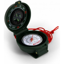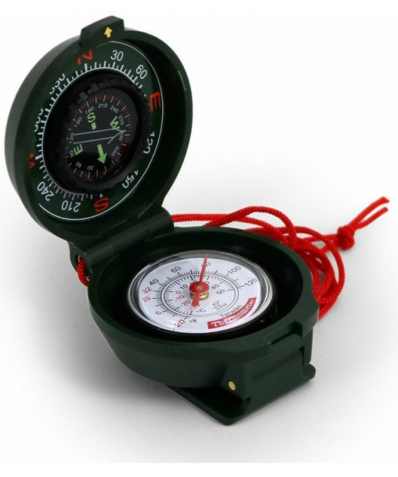 uzavíratelný kapalinový kompas s teploměrem stupnice dělená po 5o luminiscentní stupnice teploměr se stupnicemi oC a oF klip pro připevnění k opasku červená šňůrka pro možnost zavěšeníVíce
