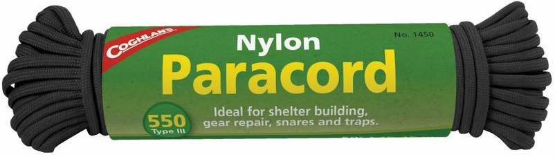 pevnostní víceúčelové padákové lano (paracord) černé barvy vysoká odolnost nylonová šnůra Type III Commercial Grade 550Cord skládající se ze sedmi vláken nosnost až 45 kg vnější vrstva odolná vůči opotřebení vnitřní vrstva zvyšující pevnost může být použita jako rybářský vlasec nebo na šití důležitý doplněk při kempování, přípravě nástrah, turistice či stavění nouzových přístřešků doporučováno chatařům a motoristům k upevňování jakéhokoliv materiálu při běžných činostech není určeno pro horolezectví! vyrobeno v USAVíce
