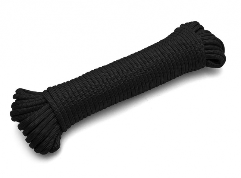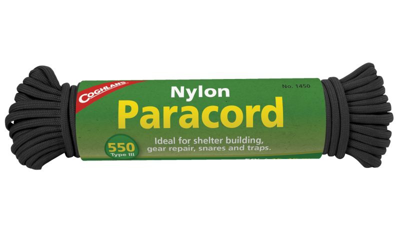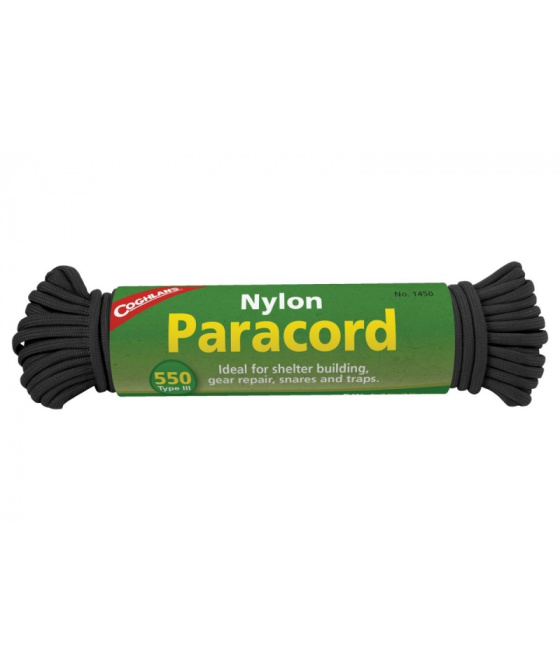 -pevnostní víceúčelové padákové lano (paracord) černé barvy -vysoká odolnost -nylonová šnůra Type III Commercial Grade 550Cord skládající se ze sedmi vláken -nosnost až 45 kg -vnější vrstva odolná vůči opotřebení -vnitřní vrstva zvyšující pevnost může být použita jako rybářský vlasec nebo na šití -důležitý doplněk při kempování, přípravě nástrah, turistice či stavění nouzových přístřešků -doporučováno chatařům a motoristům k upevňování jakéhokoliv materiálu při běžných činostech -není určeno pro horolezectví! -vyrobeno v USA