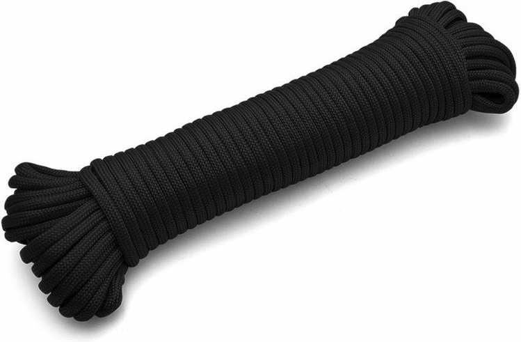 pevnostní víceúčelové padákové lano (paracord) černé barvy vysoká odolnost nylonová šnůra Type III Commercial Grade 550Cord skládající se ze sedmi vláken nosnost až 45 kg vnější vrstva odolná vůči opotřebení vnitřní vrstva zvyšující pevnost může být použita jako rybářský vlasec nebo na šití důležitý doplněk při kempování, přípravě nástrah, turistice či stavění nouzových přístřešků doporučováno chatařům a motoristům k upevňování jakéhokoliv materiálu při běžných činostech není určeno pro horolezectví! vyrobeno v USA