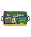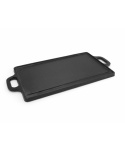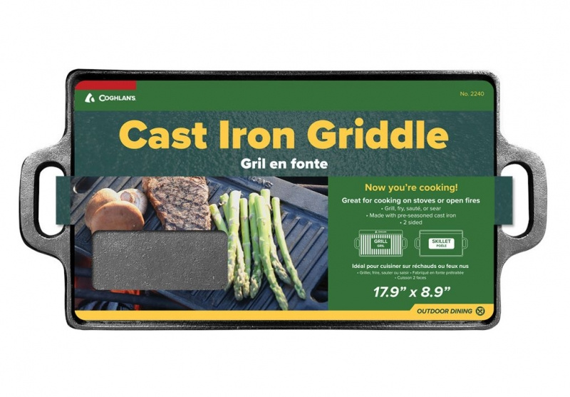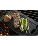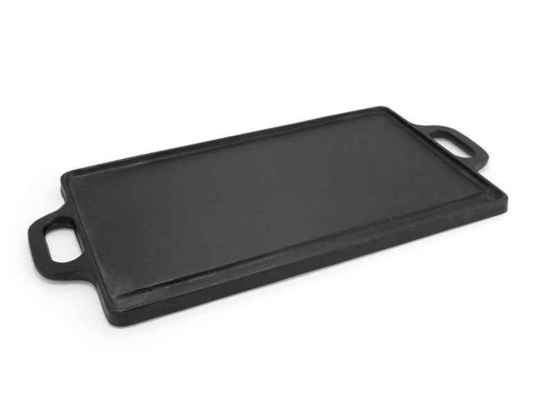 -litinový gril pro gurmánské grilování, který lze použít na téměř jakýkoli zdroj tepla včetně přenosných sporáků, grilů a otevřeného ohně -dvě grilovací plochy typu pánev a gril poskytuje perfektní prostor pro různé pokrmy, od steaků přes zeleninu až po palačinky a další -dvě boční držadla