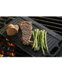 litinový gril pro gurmánské grilování, který lze použít na téměř jakýkoli zdroj tepla včetně přenosných sporáků, grilů a otevřeného ohně dvě grilovací plochy typu pánev a gril poskytuje perfektní prostor pro různé pokrmy, od steaků přes zeleninu až po palačinky a další dvě boční držadlaVíce