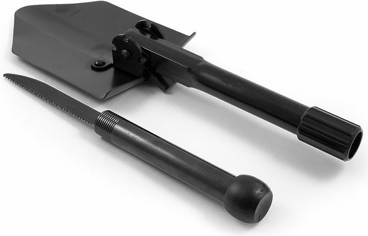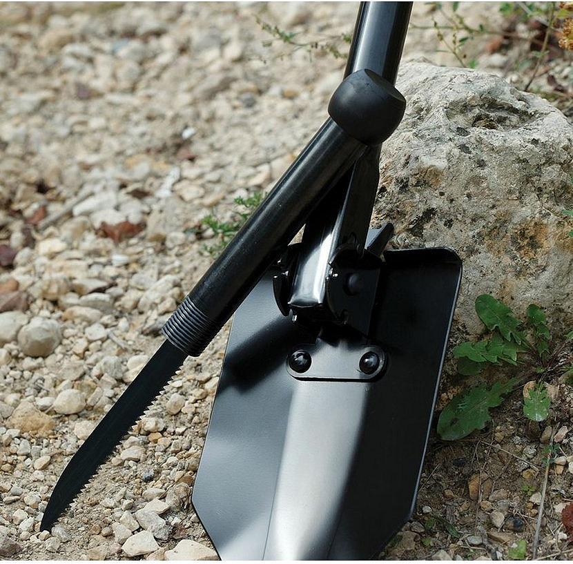 robustní lopata se sklopnou šroubovací rukojetí, kterou lze vysunout až do celkové délky 59 cm zajišťovací západka umožňující lopatu použít ve třech polohách pilka o délce 14 cm uschovaná v rukojeti lopatky, kterou po vyjmutí našroubujete na výsuvnou rukojeť vyrobeno z oceliVíce