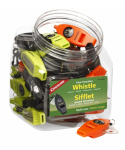 píšťalka se 4 funkcemi ve třech barevných variantách kompas pro rychlou orientaci lupa teploměr se dvěma stupnicemi °C a °F spona pro připevnění píšťalky barvy: černá, oranžová, světle zelená