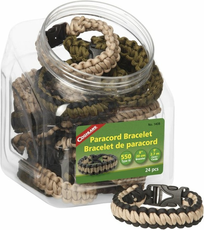 odolný náramek, který se dá rychle rozplést a může pomoci v nouzové situaci náramek pro přežití je ideální pro stanování, pobytu na lodi, lov, turistiku a další aktivity lano z náramku je pevné a dá se využít v situacích, kdy je zapotřebí odolnost a pevnost základem lana jsou tenká vlákna, která mohou být využita například jako vlasec na rybaření, tětiva pro výrobu nouzového luku, k výrobě sítí, pastí, jako škrtidlo, náhradní tkaničky a mnoho dalšího plastová sponaVíce