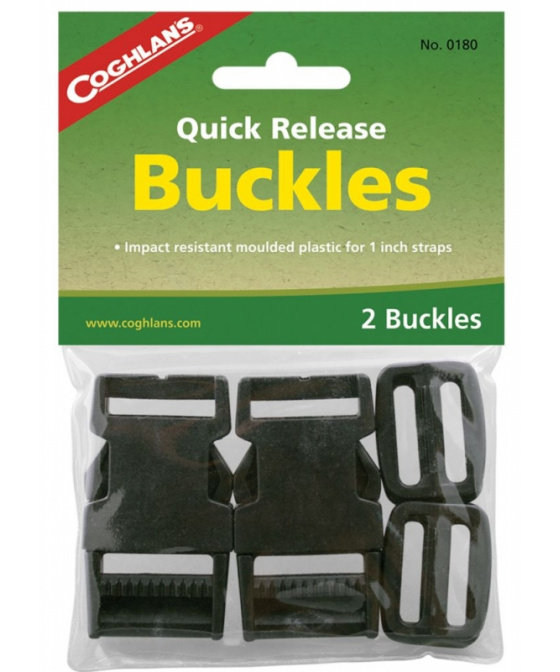 sada dvou černých náhradních přezek z plastu odolného proti nárazu určených na popruhy o šířce 2.54 cm