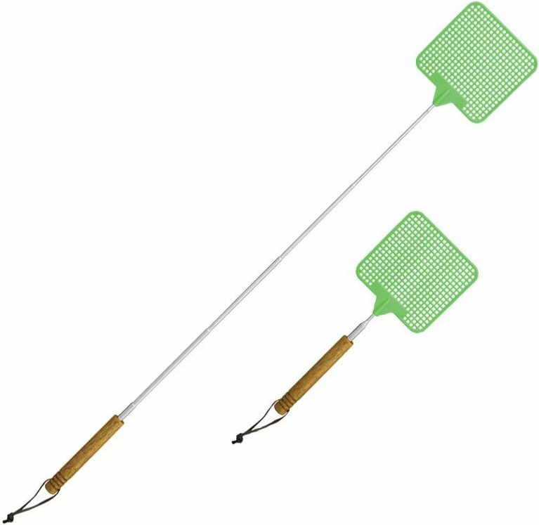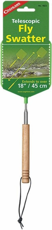 teleskopická plácačka na mouchy o délce až 45.7cm s pohodlnou dřevěnou rukojetí a koženým řemínkem pro zavěšení teleskopická plácačka na mouchy, která je ideálním řešením při kempování, v karavanech nebo na chatě dokonale se hodí k eliminaci obtížných much, ovádů, komárů a jiného hmyzu plně vysunutá má plácačka délku 45,7 cm pohodlná dřevěná rukojeť kožený řemínek pro zavěšení délka 39.5 - 45.7 cm 45 g dřevo / plast / kov / useň
