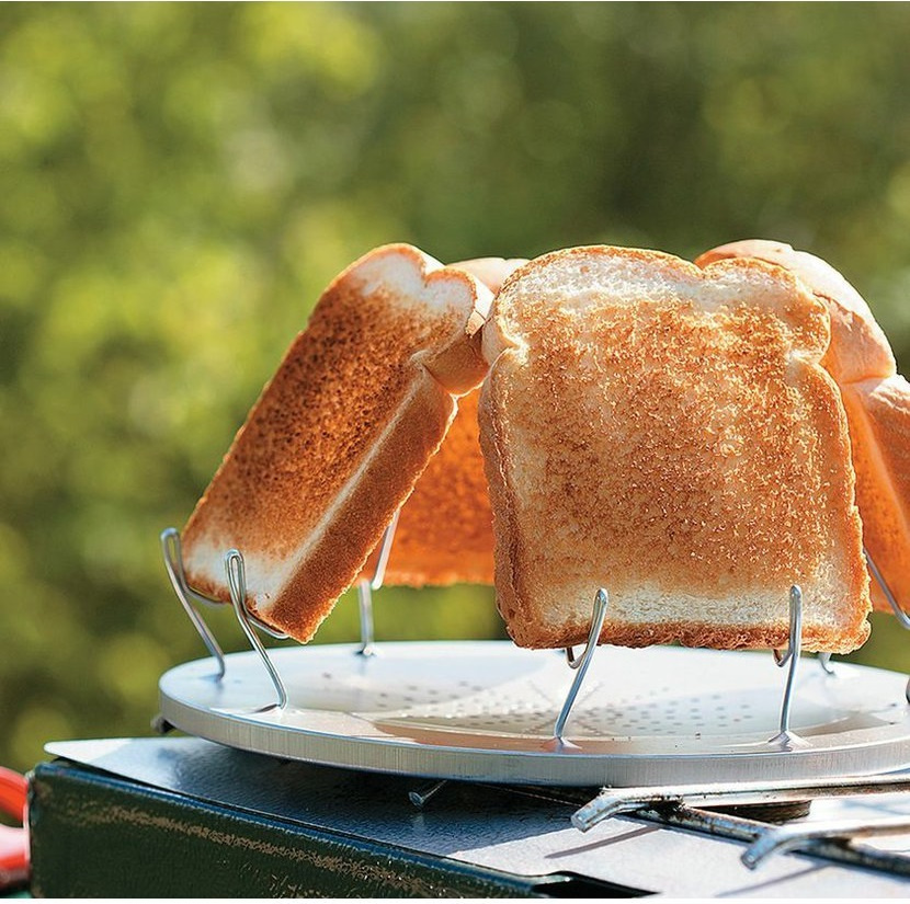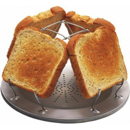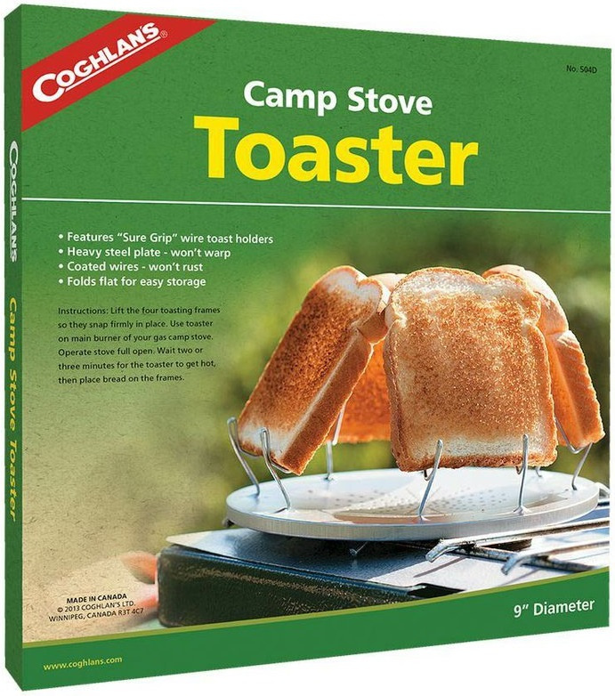 legendární toastovač Coghlan's Camp Stove Toaster je snadný a pohodlný způsob, jak si připravit toast během kempování toustovač pojme najednou 4 plátky toastů současně pro dokonalou táborovou snídani vyrobeno z lehkého ocelového plechu s dráty odolnými proti korozi, které se skládají naplocho základní deska má průměr 23 cm a je navržena tak, aby se vešla na hlavní hořák většiny plynových sporáků ideální pro kempování, do karavanu, na chatu nebo na zahradní grilování navrženo pro použití s plynovými sporáky
