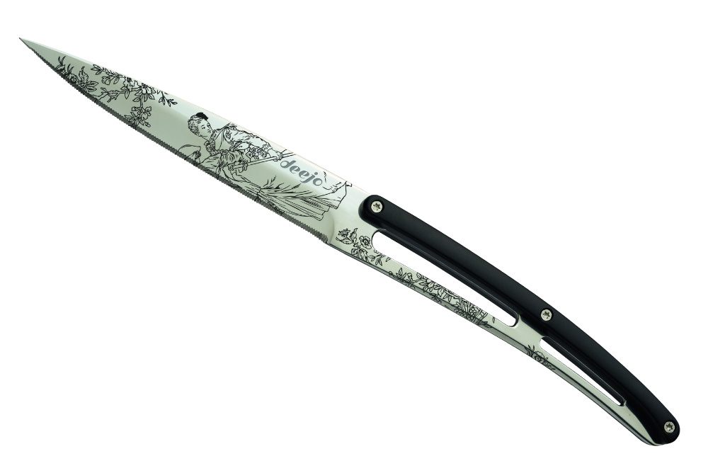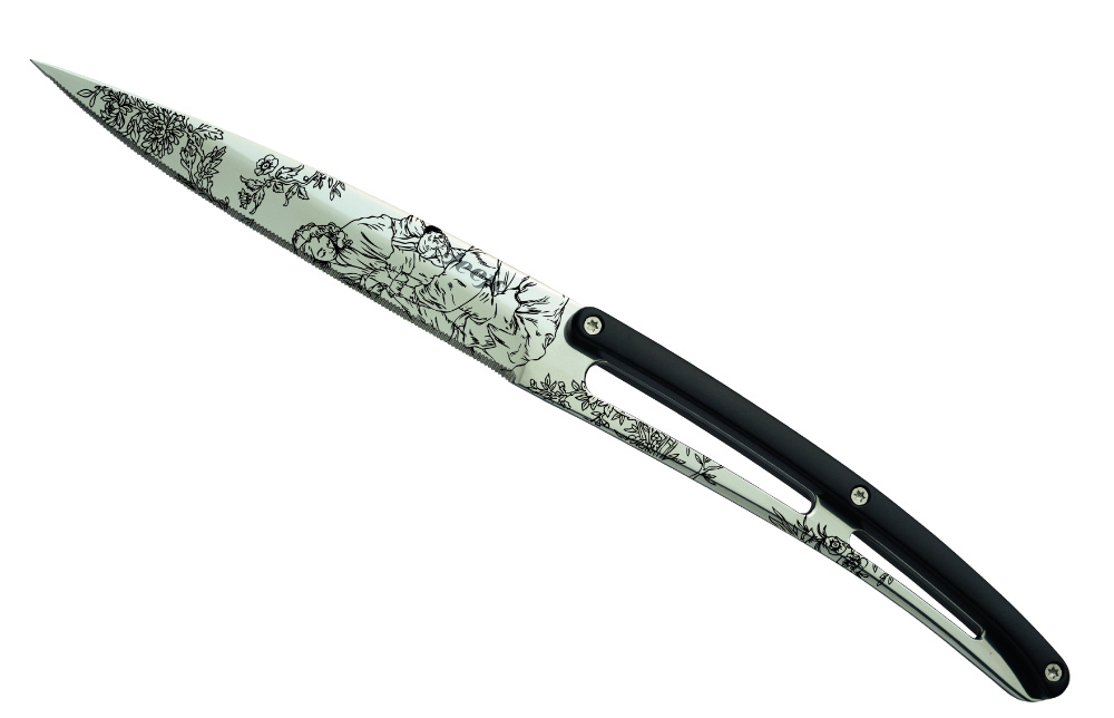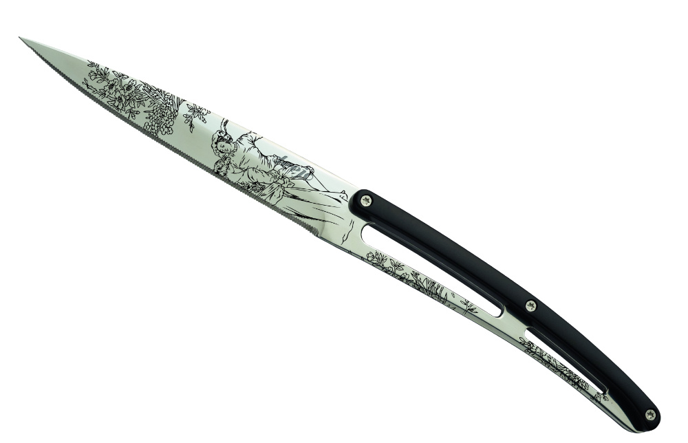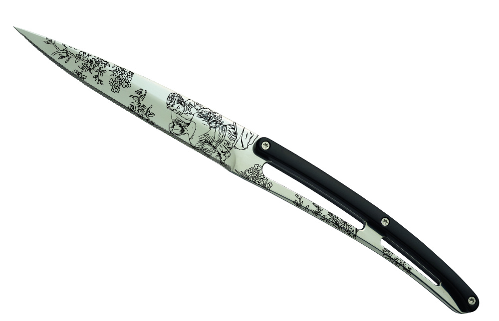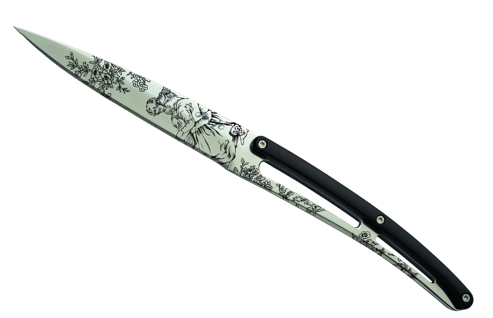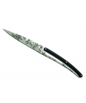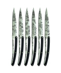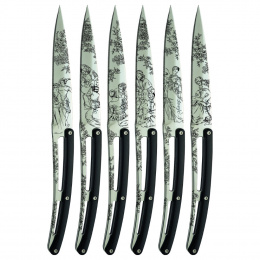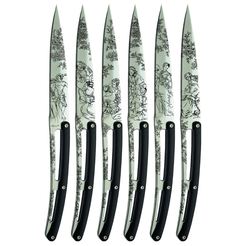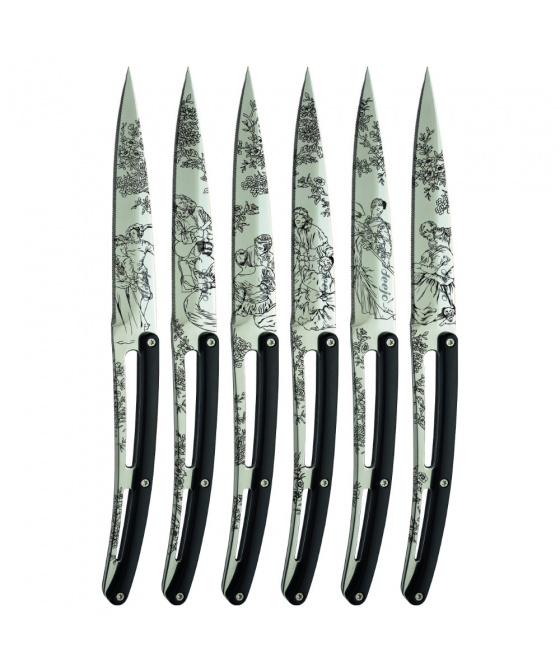 Deejo 2AP011 sada 6 příborových nožů, lesklá čepel, zubaté ostří, rukojeť černý ABS, design Toile de Jouy