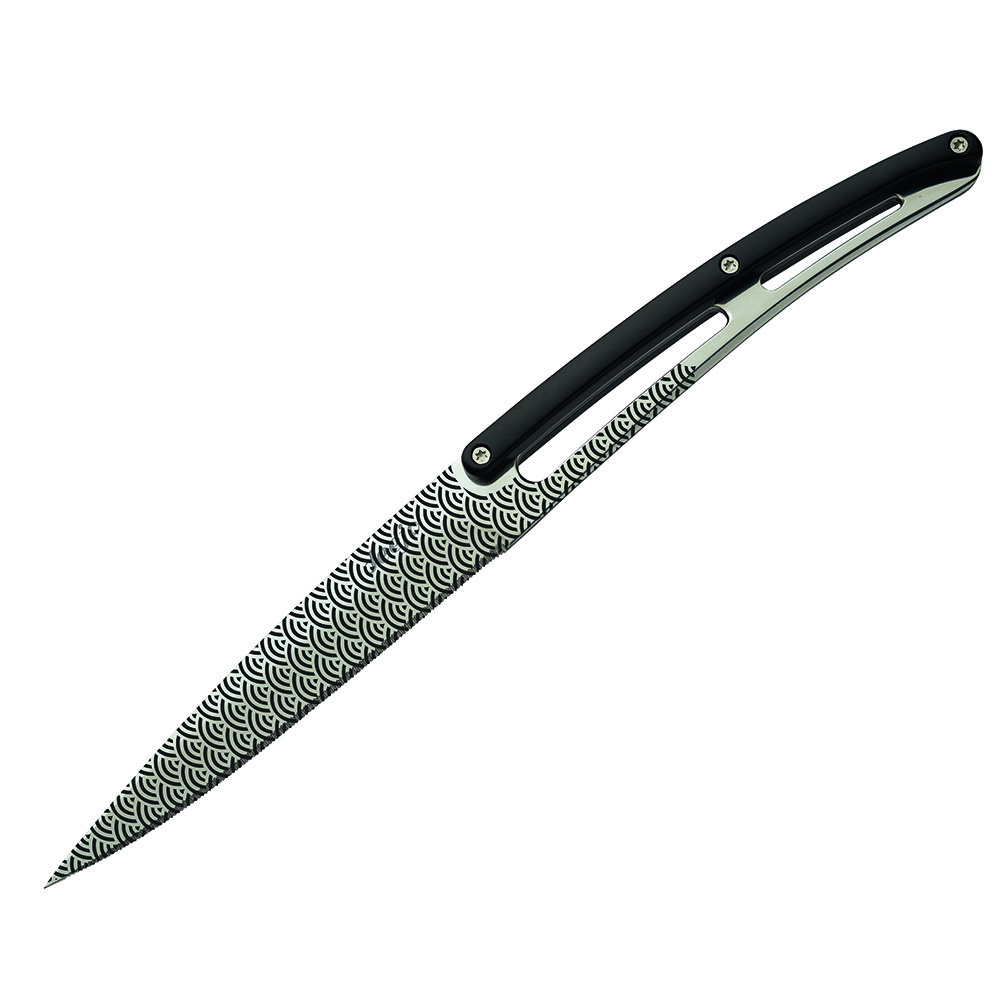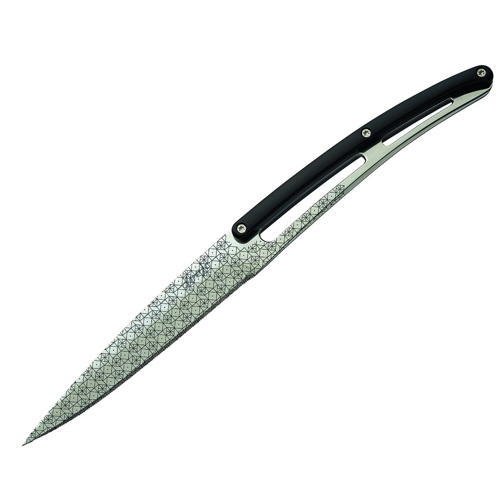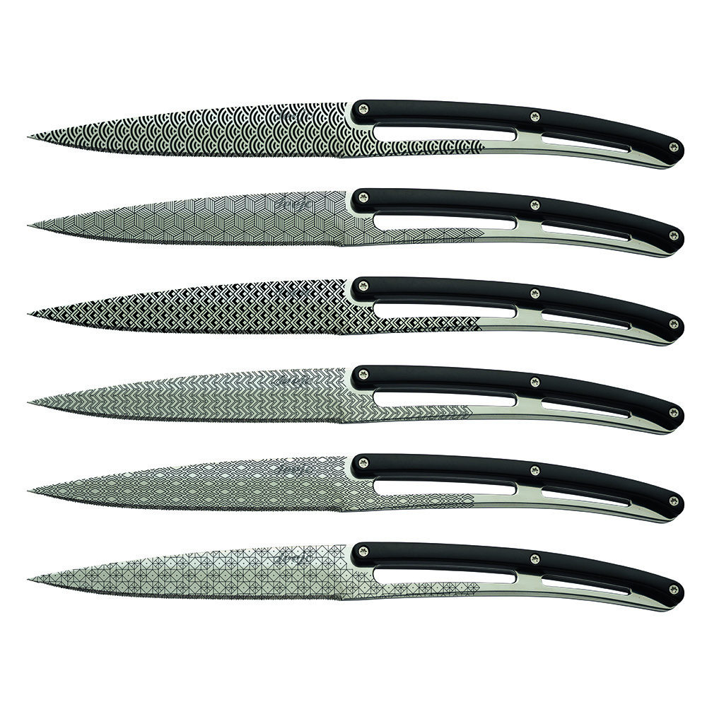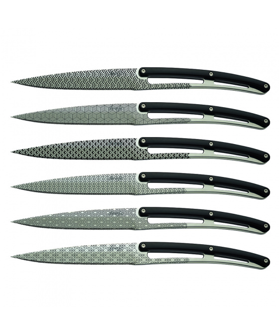 Deejo 2AP013 sada 6 příborových nožů, lesklý povrch,zubaté ostří, rukojeť černý ABS, design Geometry