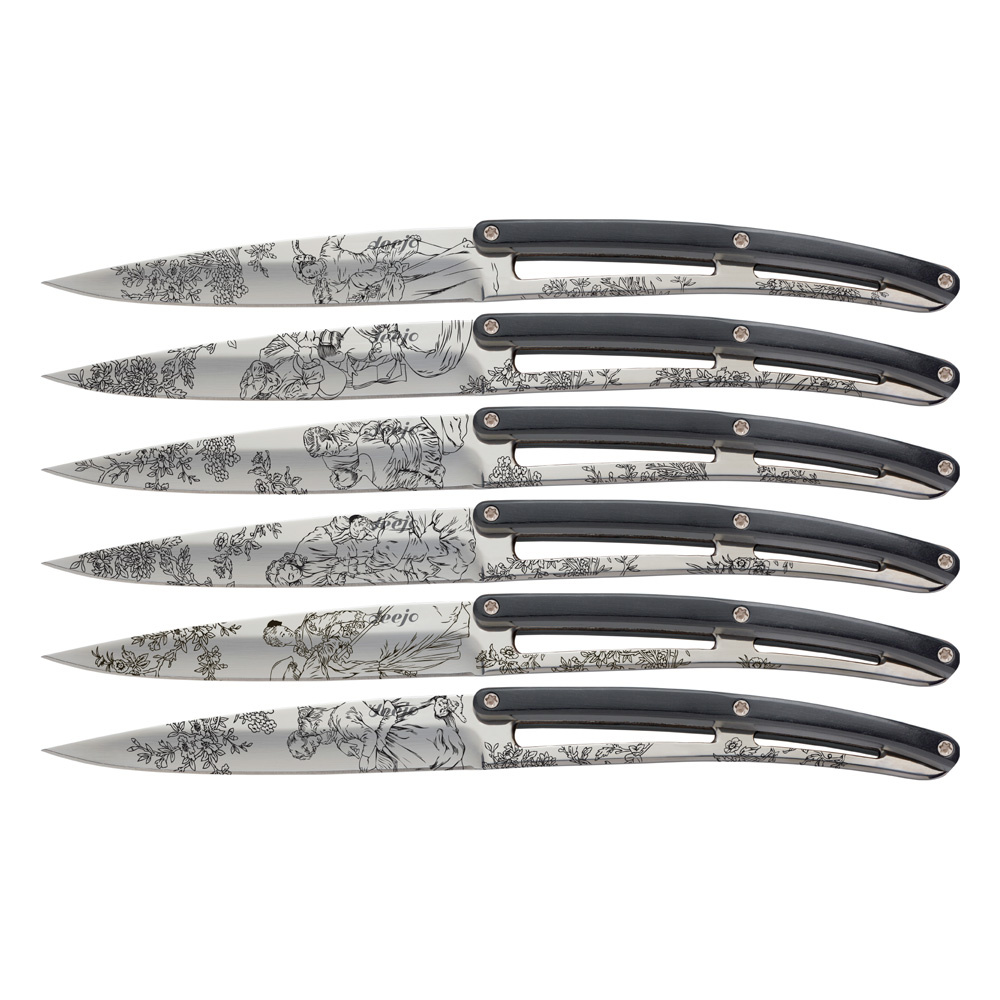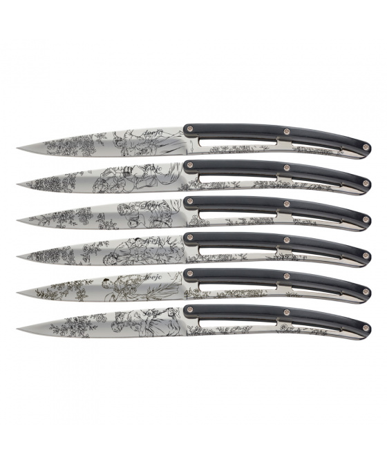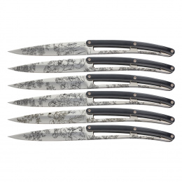 Deejo 2AS021 sada 6 příborových nožů, lesklá čepel, paperstone, design Toile de Jouy