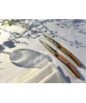 <p>Sada stylových příborových nožů s rukojetí z olivového dřeva a titanově šedou matnou čepelí