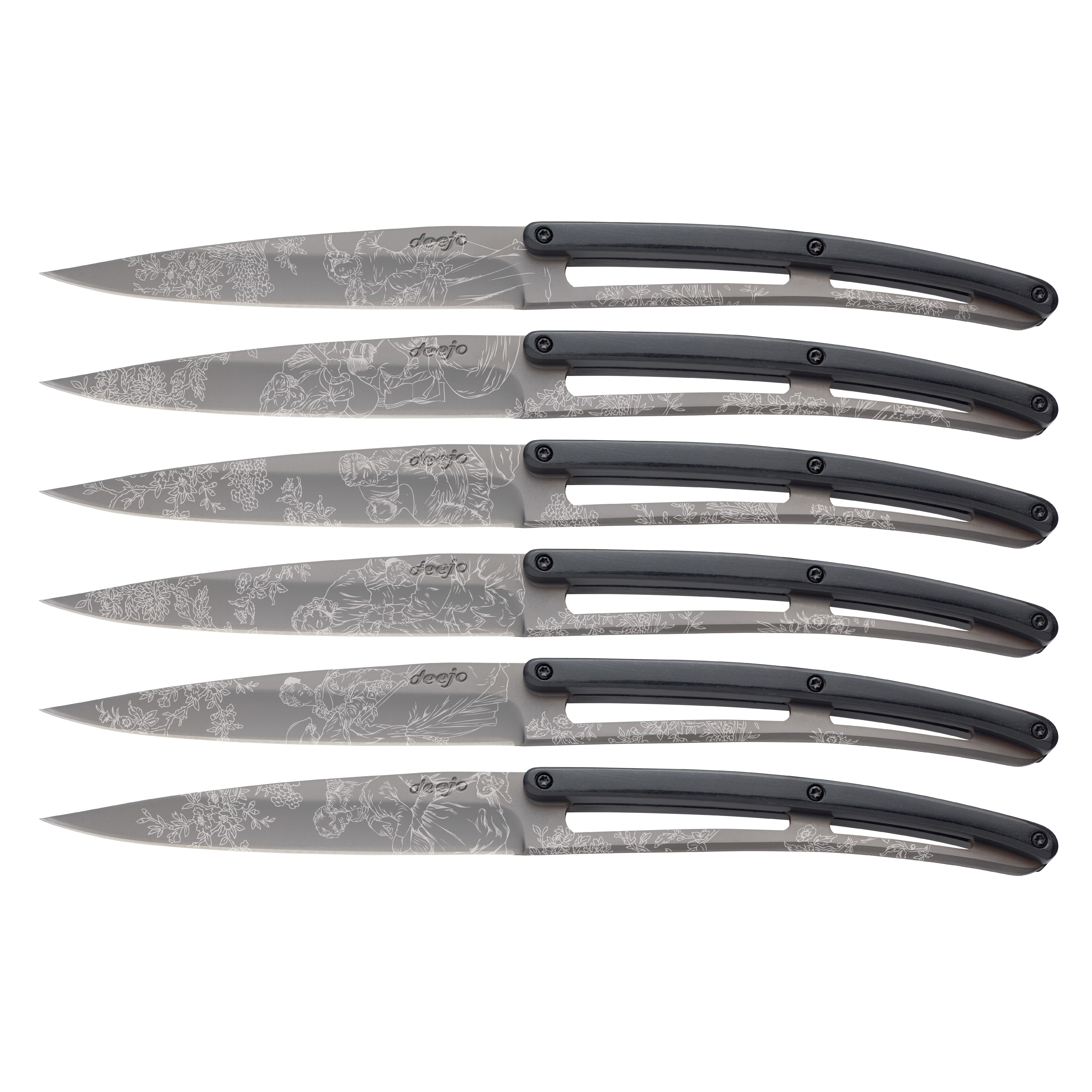 Deejo 2FS021 sada 6 příborových nožů, titanový povrch, paperstone, design Toile de Jouy