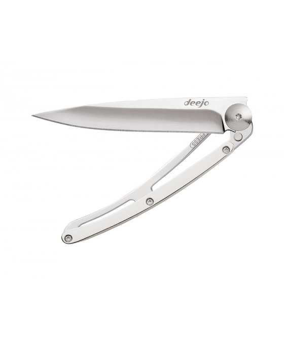 Kapesní nůž Deejo s rukojetí pokovenou 9 kt bílým zlatem a čepelí v zrcadlovém lesku.Více
