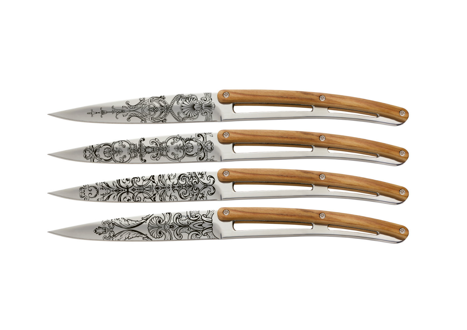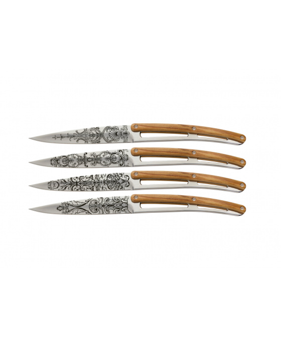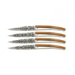 Deejo 4AB106 Tattoo sada 4 příborových nožů,lesklý povrch,olivové dřevo,Grand Siecle