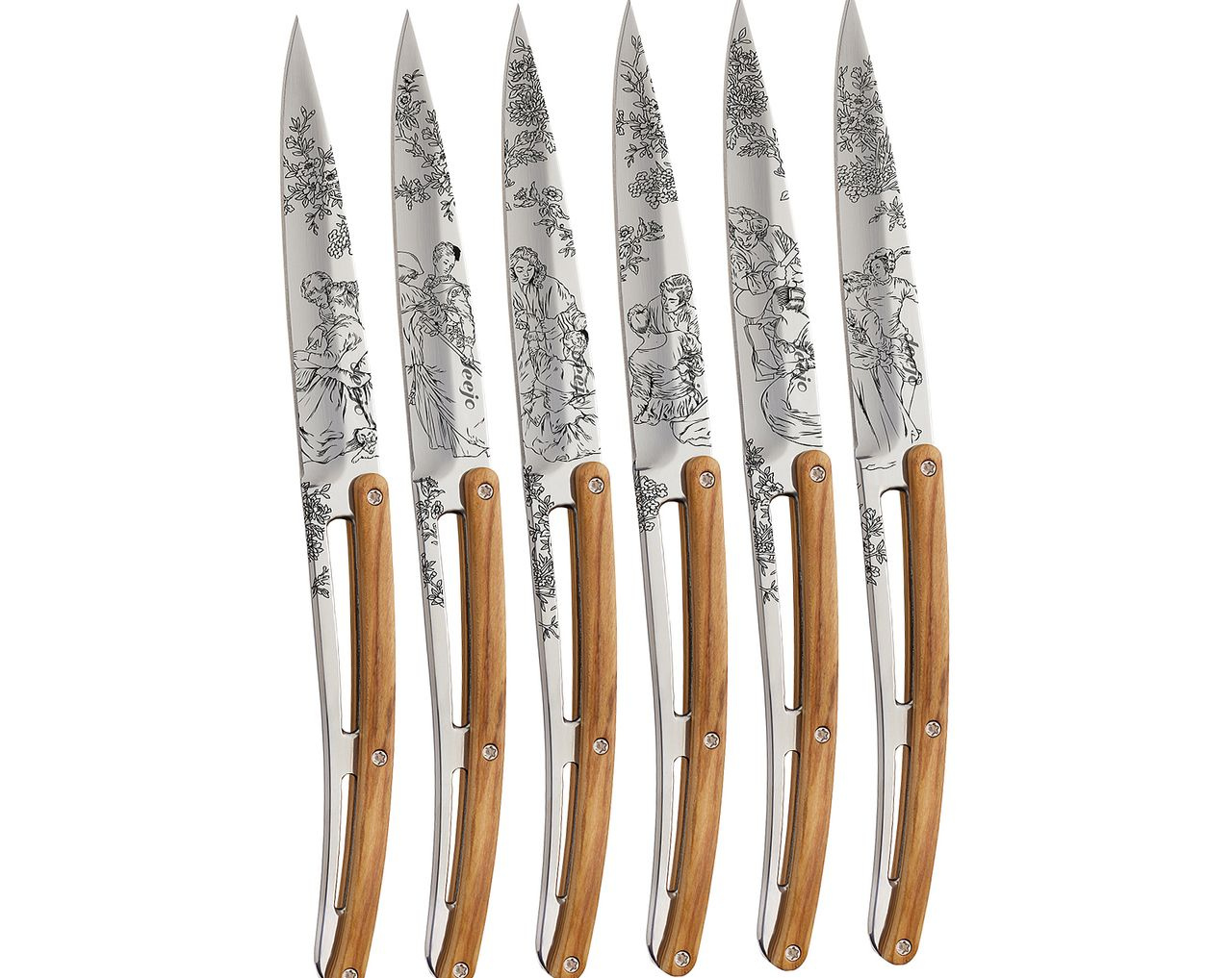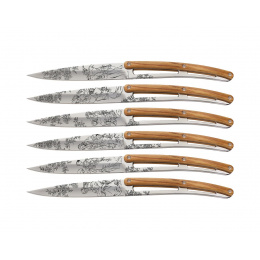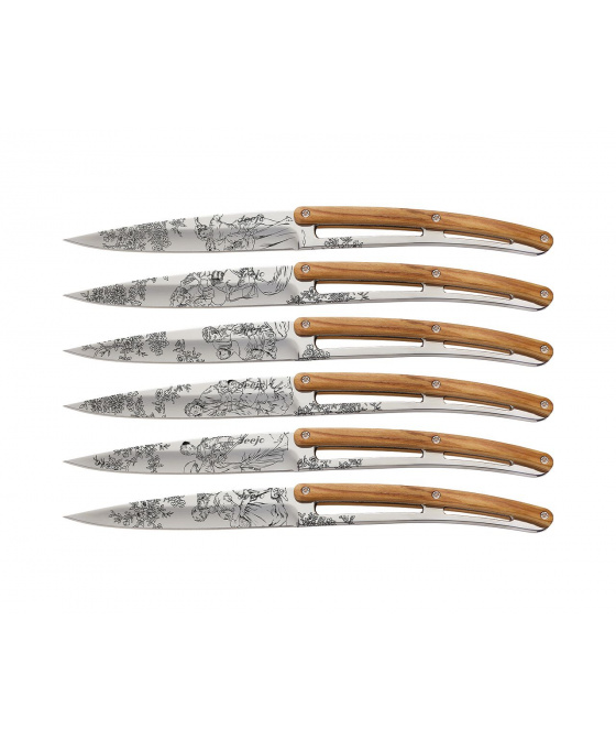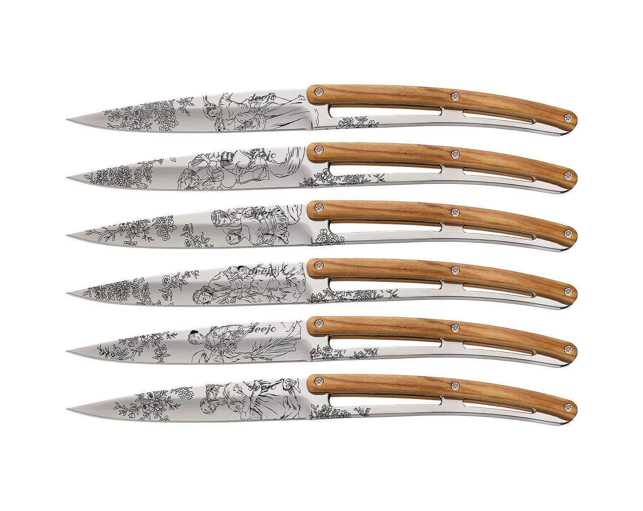 Deejo 6AB103 Tattoo sada 6 příborových nožů,lesklý povrch,olivové dřevo,Toile de Jouy