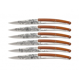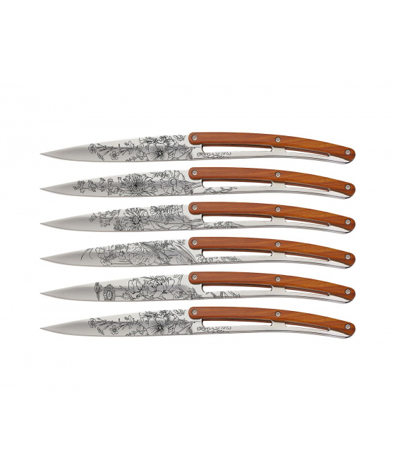 Deejo 6AB104 Tattoo sada 6 příborových nožů,lesklý povrch,coralwood, design Blossom