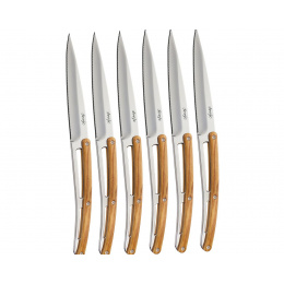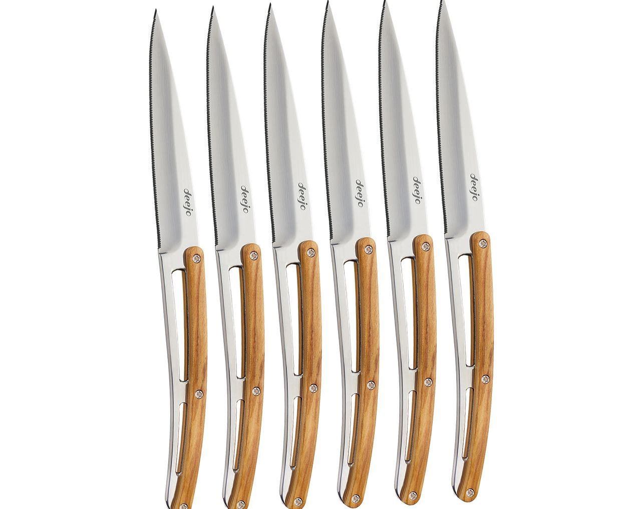 Deejo 6AB501 sada 6 příborových nožů Table,vysoký lesk,olivové dřevo,zub.ostří
