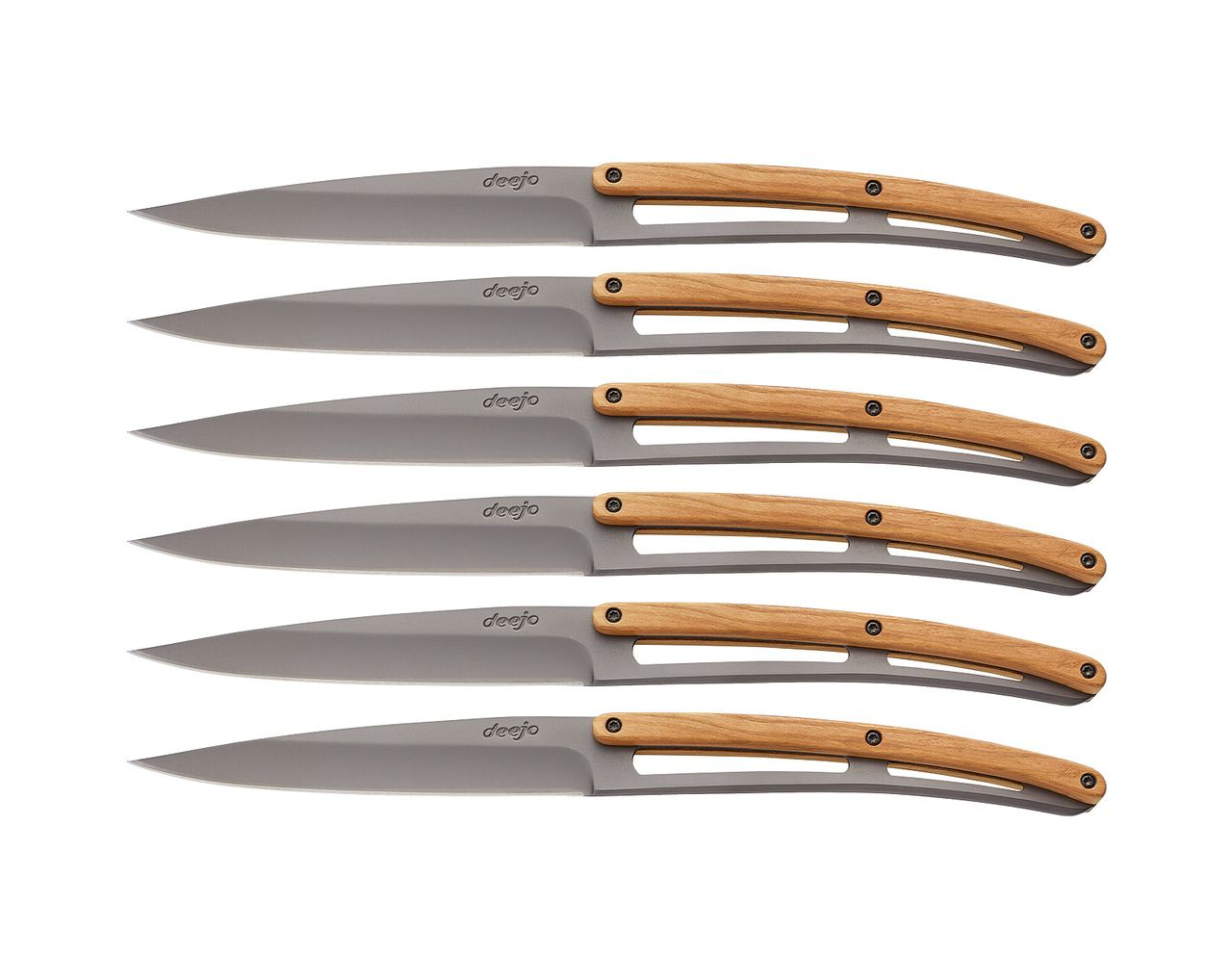 Deejo 6FB001 sada 6 příborových nožů Table,šedý titan,olivové dřevo