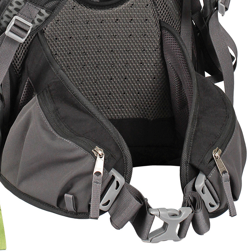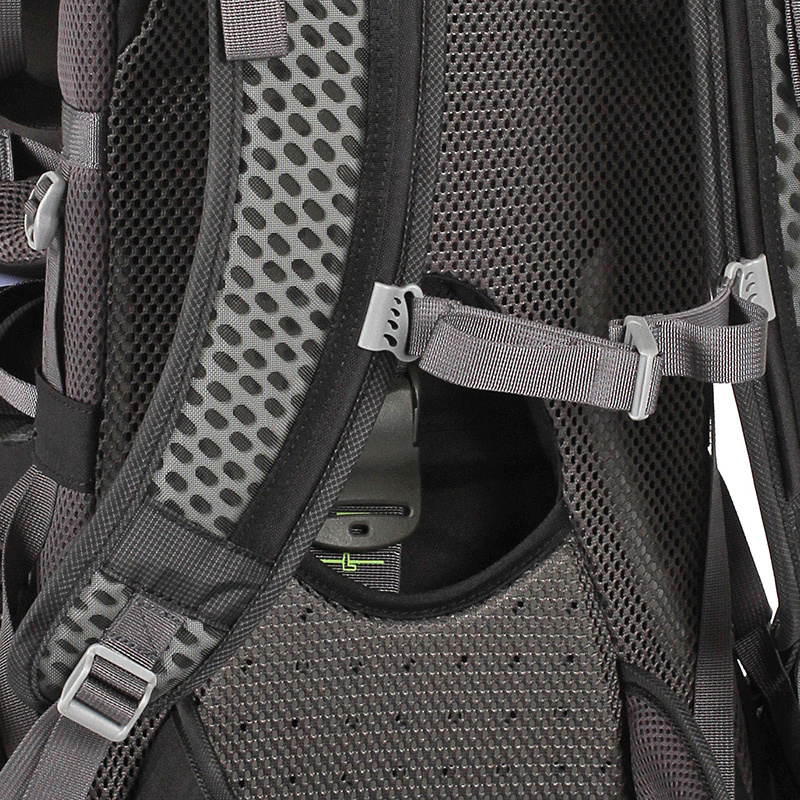 - Vysoce kvalitní nastavitelný zádový systém s polstrováním ramen, zadní části a otočným bederním pásem