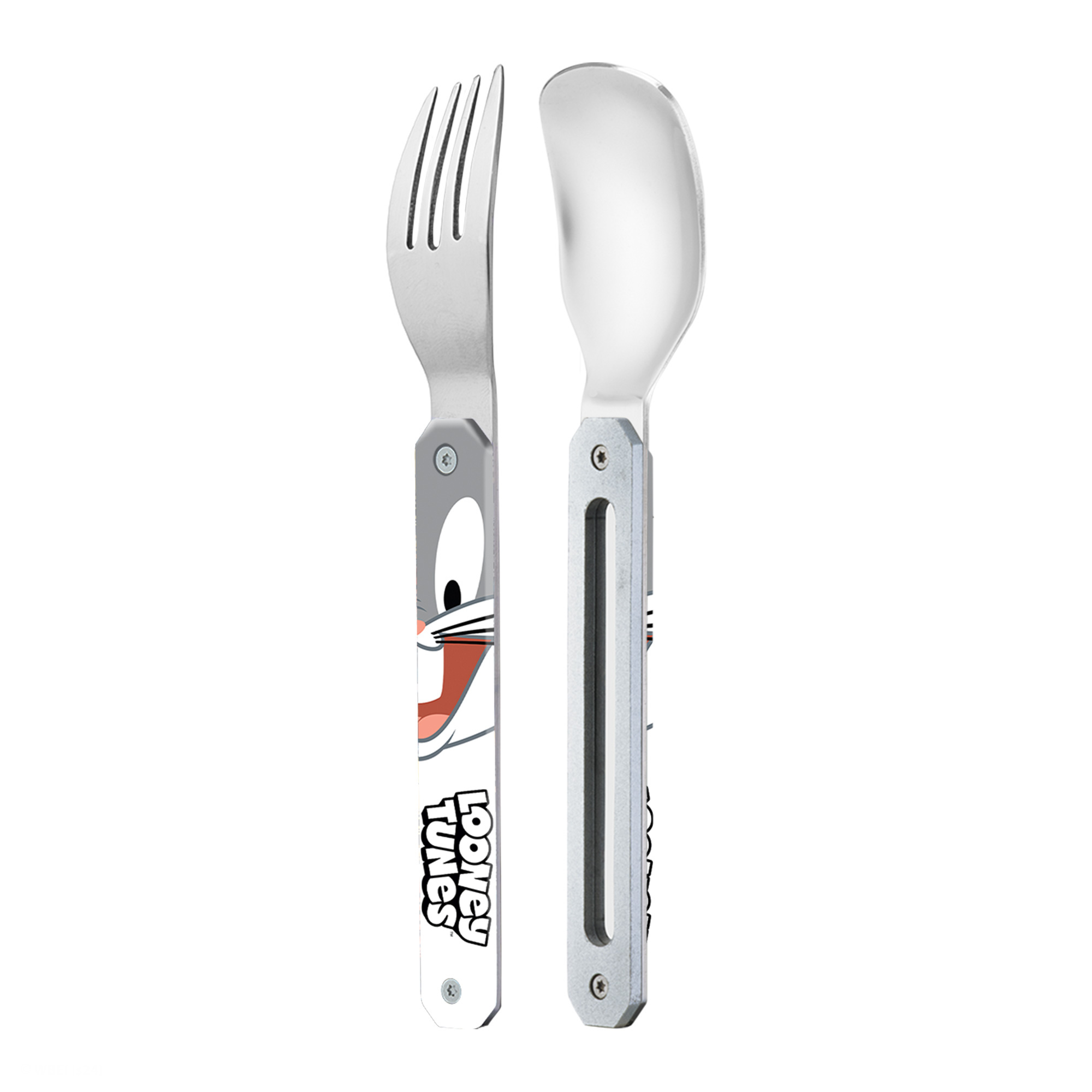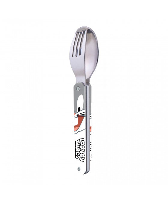 Dětská lžíce a vidlička v příborovém setu z kolekce Looney Tunes. Dodáváno s pevným PP pouzdrem. Lze mýt v myčce na nádobí.